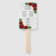 Red Roses & Pine Branch Christmas Wedding Program Hand Fan