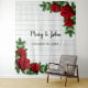 Red Roses & Pine Branch Wedding Photo Backdrop Tapestry