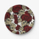 Red Roses & Skulls Black Floral Gothic White Paper Plate