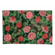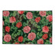 Seamless pattern with red roses flowers. Coloured Vintage illustration. Isolated on black background.