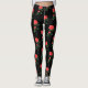 a decorative watercolor design of red roses on black leggings