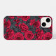 Red roses with grey leaves on black iPhone case