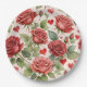 Red Roses with Valentine Hearts Pattern Romantic Paper Plate