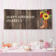 "Happy Birthday" party custom banner with rustic cowboy boots, bright yellow sunflowers, and beautiful red roses on a dark brown wood background. Personalize with the name of the guest of honour.