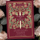 Set the tone for your medieval fantasy wedding with a bold invitation design—a grand sword surrounded by florals against a red background. Perfect for couples dreaming of an epic, romantic celebration. Personalize it for your needs. NOTE: the gold featured in this design is NOT real foil.