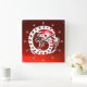 RED RUBY AND WHITE SNAKE DRAGON ,PINK GEMSTONES SQUARE WALL CLOCK