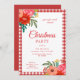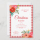 Rustic Red Gingham Floral Christmas Party Invitation