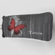 Create a unique golf gift with a Red Rustic Butterfly Personalized Golf Head Cover. Cover design features a butterfly against a white leaf vine and dark grey wooden background with a place to personalize with your name. Additional items available with this design as well. Please contact me directly for assistance with personalization.