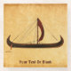 A Viking long ship with a red sail seen in profile from the right side and superimposed on an old paper background image. Customize by adding your own text.