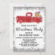 Celebrate the holiday season with this festive red vintage truck with gifts holiday Christmas party invitation. The party details are written in a whimsical, bold black script typography with a silver glitter sparkles border and white background. This invitation is perfect for a holiday/ Christmas/ winter party!