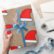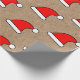Red Santa Hat Pattern on Rustic Kraft Background Wrapping Paper