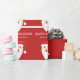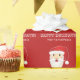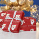 This personalizable wrapping paper features Destei's cartoon illustrated pattern of fun Santa Claus heads on a red background colour. Under Santa it reads "Happy Holidays!" together with a personalizable text area to write from whom the gift is from, for example.