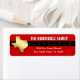A big belly requires a big belt and a big - that is, Texas-sized - buckle to hold it all together. This somewhat abstract design shows the red of Santa's coat and black belt with gold holes. The buckle is a dimensional gold shape of Texas. Handwritten script across the top wishes the recipient a merry Christmas with your family name below the belt. Matching products available.