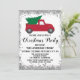 Celebrate the holiday season with this festive red vintage truck with gifts holiday Christmas party invitation. The party details are written in a whimsical, bold black script typography with a silver glitter sparkles border and white background. This invitation is perfect for a holiday/ Christmas/ winter party!