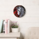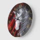Silver white horse head - flowing black mane, Horse Lover's Clock - showing a beautiful white horse up close with graceful flowing mane in front of draped red satin complete with gold roman numerals - all digitally created