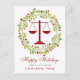 Red Justice Scale Holly Wreath Simple Attorney Christmas Cards