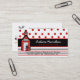 Fun teacher's business card done in black, red, and white, with polka dots and stripes. Graphics of a whimsical ladybug next to a little red school house, decorates the left side of the card. The back has a white background and text for teacher / parent conferences and decorated, with a cute ladybug holding a note. Personalize all the text front and back to suit your needs. Great for teachers and tutors.