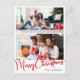 Red Script Merry Christmas Vertical Two Photo Holiday Postcard