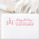 Elegant, Modern Red and White Hand Lettered Christmas Family Return Address Labels. Featuring a pretty hand-written script with saying "merry christmas" in swash-tail font, pine trees dodle with little hearts. Great for Christmas holiday season, easy to personalize them with your names and return address info.