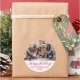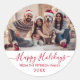 Red Script White Family Photo Happy Holidays Classic Round Sticker