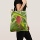 Red bloom of a Shampoo Ginger plant on an all-over printed tote bag