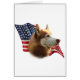 USA! America! Shout your pride with this awesome flag Patriotic background with this AKC dog breed red Siberian Husky in the forefront. Show your pride with this design on a t-shirt, mug, keychain, tote, magnet, button or greeting cards.