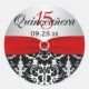 This 1.5" round red, silver grey, and black damask Quinceanera 15 sticker or envelope seal has a PRINTED ribbon and a PRINTED diamond jewels buckle on it that matches the quinceanera party invitation shown below. Customize with your own text. Other shapes and sizes are also available. ***USE caution if you choose a different shape, as some text may get cut-off during printing. Everything will print as it appears on your monitor, and there is a large safety zone around the edge of the stickers, so it would probably be best if you contact me at the email address below if you prefer an alternate shape or need to add additional text. If you need any assistance, please email niteowlstudio@gmail.com for help.