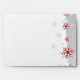 Red silver grey white snowflake wedding envelope, featuring a waved band in silver grey with stars and red elegant snowflakes. A stylish design perfect for your winter, December or Christmas wedding. Modern and contemporary yet suitable for a traditional wedding. This elegant, classy design can be used for other special occasions such as engagements or anniversaries.