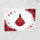 Red silver and white Quinceanera reception details enclosure cards. Features brunette girl in ball gown dress, script font, silver butterflies, red roses and tiara. Perfect for an elegant princess style glam celebration. Personalize with your own details.