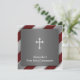 Elegant black, silver and white diagonal stripes with white cross boys first holy communion invitation.