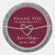 Simple, elegant, luxury, glam glitter silver and red wedding thank you sticker for favours, with romantic rope heart.