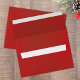 This design features a Christmas envelope, with a return address template, a red and white background, and an elegant, classic classy Christmas simple minimalist modern design.