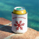 Red Simple Snowflake Merry Christmas Can Cooler. The design has a simple modern red snowflake on a white background and a Merry Christmas text. You can change the text Merry Christmas.