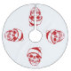A red skull with a Santa hat. A cross is on the end of the hat. Drawn in red ink.