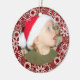 Red background with white snowflakes customizable keepsake photo holiday ornament.