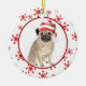Red Snowflake Santa Hat Pug Christmas Ceramic Ornament