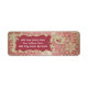 Holiday return address labels with a tan and red snowflake background, a pretty tan and red bird on a branch with berries, and a tan and cranberry red frame where you can add your name and address before ordering.