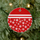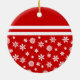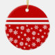 Ceramic ornament. Printed on both sides. Easily mimics a bauble, with white snowflakes on a red background and two white stripes. Other colours and shapes available, as well as matching labels, mugs and other products.