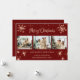 Cute red photo collage Merry Christmas and Happy New Year card featuring snowflakes and stars on the front and falling snow at the back. Easily personalize this elegant holiday card with your photos and text.