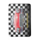 Red Sport's Car, Gold Name, B/W Chequered Bath Mat