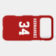 Add a name and number(s) to personalize this custom red and white sports jersey inspired phone case. It is an excellent gift for a sports fan or athlete. The options to change the colour and font sizes are available.