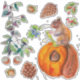 Red Squirrel Forest Acorns Pine Cone Leaves Rustic
