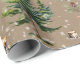 A holiday wrapping paper featuring watercolor-painted red squirrels in a snowy woodland forest on Kraft colour paper.