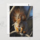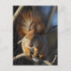 Red Squirrel (Sciurus Vulgaris) with a Hazelnut in his mouth, sitting on the tree branch. Winter coat.