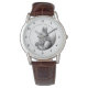 The watch looks really great! Very sharp and well done. The leather band is really nice, though for a man's watch I think it should be longer. Unfortunately, it isn't big enough for my husband's wrist but I will get a replacement because he is very excited to wear it!