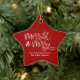 Red Star Our First Christmas Married Merry Photo Ceramic Ornament