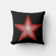 Modern design with a "shining" red and white star on a black background your choice of text on the back. Throw pillow with a customizable design for you to personalise with your own text, images and ideas. This is a digital art image created using original photographs and digital techniques and printed onto fabric, it does not shine or contain real sparkles.