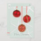 Affordable postcard greeting with a tropical, Christmas theme. Holiday ornaments in bright red over a light blue-gray background covered in starfish. Customize easily with text templates.