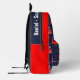 Bright red puffing steam train boys backpack. Personalize with your child's name, perfect for library or school. Currently reads Daniel and Daniel on boiler plate plus Daniel - Super Ferroequinologist along the top flap. Part of the kids graphic steam train range. Background colour can also be changed to your own colour choice currently in dark blue. A perfect gift for boys to take to school or as a gift to a train or railway transport fan. Original steam train graphic art and design by Sarah Trett exclusively for www.mylittleeden.com on zazzle.