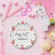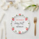 Simple and modern berry themed first birthday paper plate for a baby girl featuring various strawberries, some foliage and white daisies. This berry first birthday berry themed birthday party paper plate is ideal for a girls first birthday party.